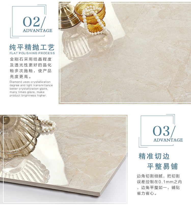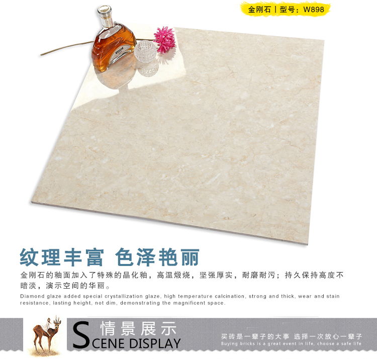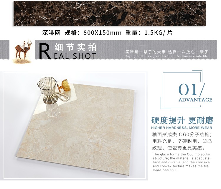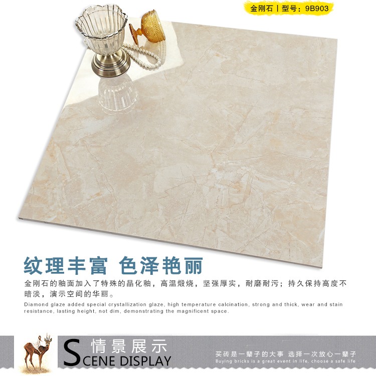 金曼古瓷磚廠家特價金剛石因高品質而得名,是一款極具天然石材效果和微晶石質感的仿石材瓷磚,它不但在價格、環保、耐用和清潔上極具優勢,在質感、規格、花色、重量等指標上,金剛石都遠遠勝于石材、拋光磚。相比其他種類的產品,它最大的特點可以用“高亮度、高耐磨、高平整、高逼真、高清晰、高環保”。