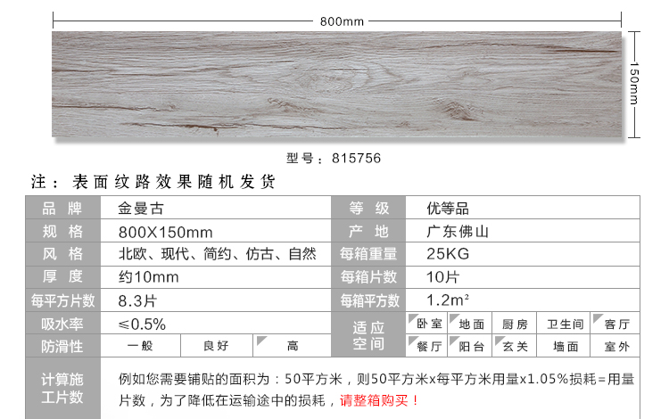 金曼古木紋磚,是一種表面呈現木紋裝飾圖案的環保建材.紋路逼真、自然樸實、沒有木地板褪色、不耐磨等缺點;曼古陶瓷木紋磚系列線條明快,圖案清晰為特色。本身具有阻燃,不腐蝕的特點,綠色、環保型建材;產品使用壽命長,耐磨,無需像木制產品那樣周期性地打蠟保養等.
