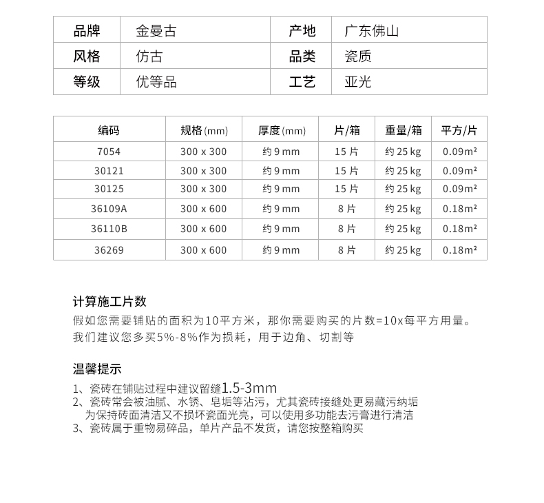 金曼古墻地磚,適用于洗手間、廚房、室外陽臺的立面裝飾,是保護墻面免遭水濺的有效途徑。它們不僅用于墻面,用在門窗的邊緣裝飾上,也是一種有趣的裝飾元素。用于踢腳線處的裝飾墻磚,既美觀又保護墻基不易被鞋或桌椅凳腳弄臟。
