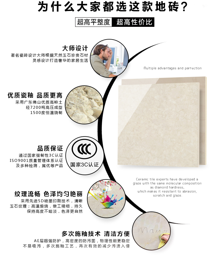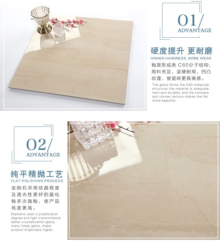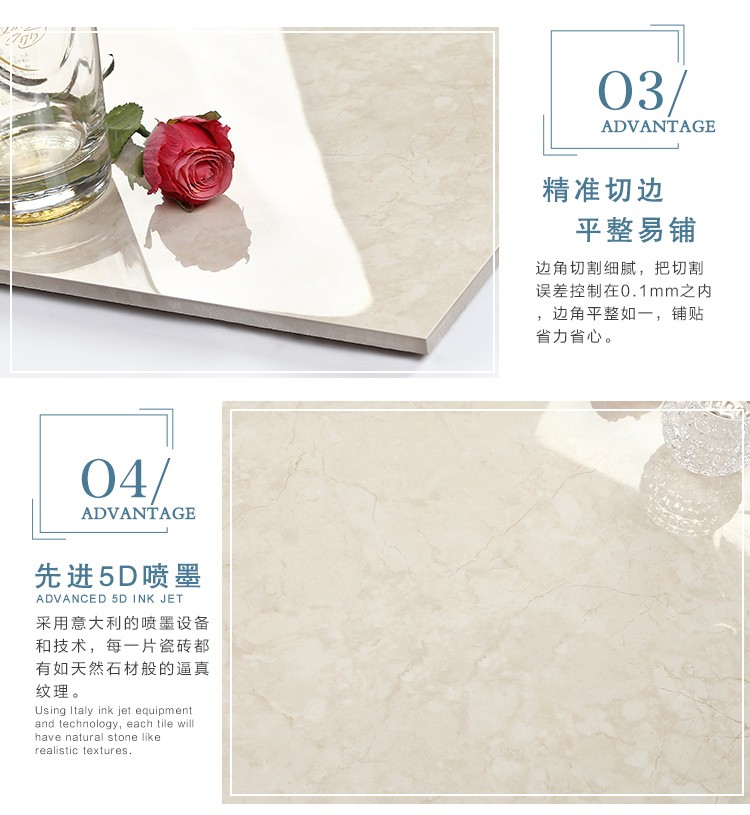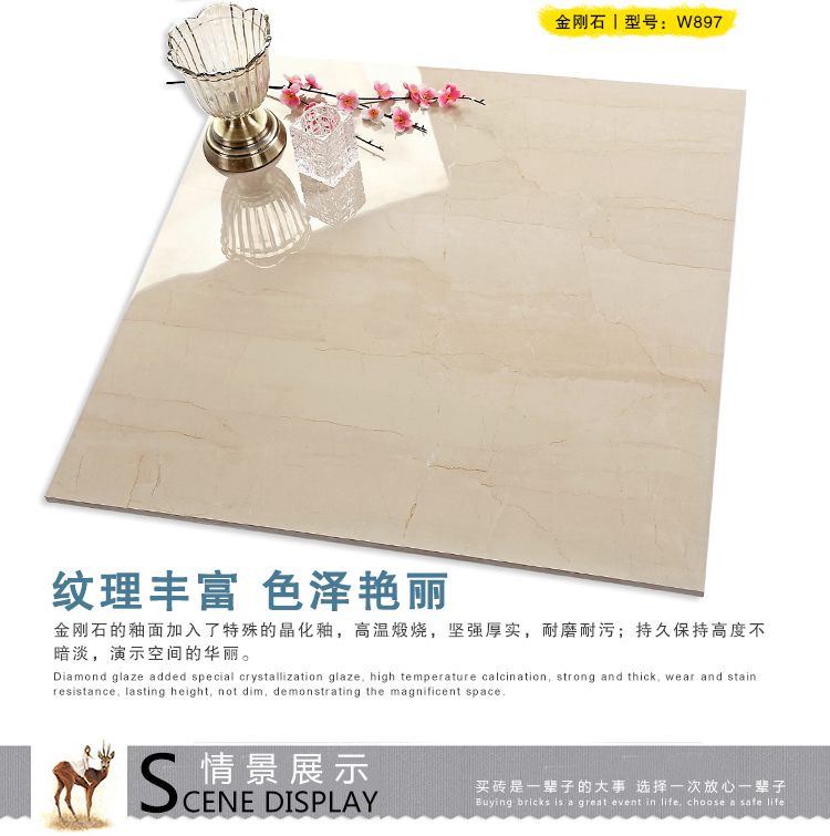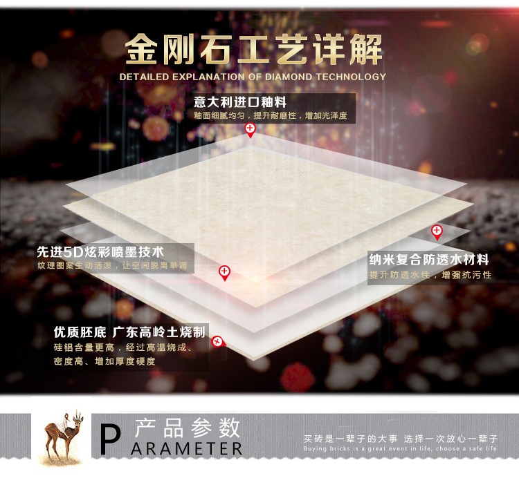 金曼古瓷磚廠家特價(jià)金剛石因高品質(zhì)而得名,是一款極具天然石材效果和微晶石質(zhì)感的仿石材瓷磚,它不但在價(jià)格、環(huán)保、耐用和清潔上極具優(yōu)勢(shì),在質(zhì)感、規(guī)格、花色、重量等指標(biāo)上,金剛石都遠(yuǎn)遠(yuǎn)勝于石材、拋光磚。相比其他種類(lèi)的產(chǎn)品,它最大的特點(diǎn)可以用“高亮度、高耐磨、高平整、高逼真、高清晰、高環(huán)保”。
