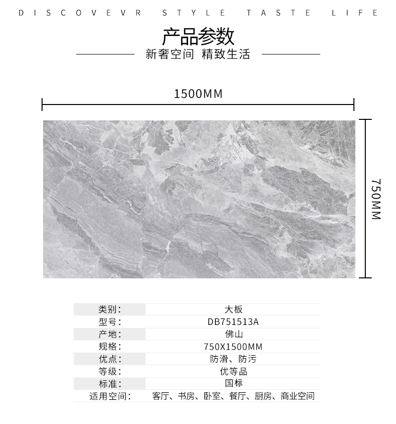 大規格瓷磚(DB751513A)-工程瓷磚 金曼古大規格瓷磚引進世界最先進的超大型壓機自動壓制而成,具有超大規格,超高硬度,超高致密度,超長時間煅燒,超低吸水率,超高光澤度。其磚面紋理流暢自然,效果逼真,適用于大型工程外墻干掛和酒店、商場、各辦公樓大堂等地面裝修